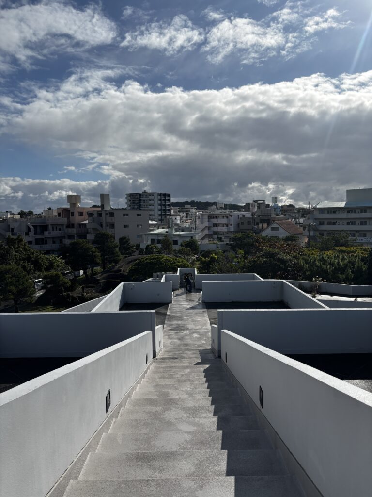 * **魂を削るような設計エピソード:** 彼はこの土地の歴史的な重みを受け止めるため、何度も現地に足を運びました。普天間飛行場の騒音や、フェンス越しに広がる風景をどう建築に取り込むか。その結果生まれたのが、毎年**6月23日(沖縄慰霊の日)**の日没、屋上の隙間から差し込む光が展示作品を照らし出すという、天文学的とも言える緻密な設計です。